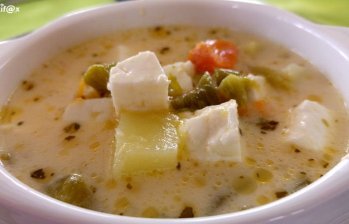 Sopa de queso Conocida también como caldo de queso y papas. No es más que una sopa con un gran sabor con trozos de queso fresco y papas.