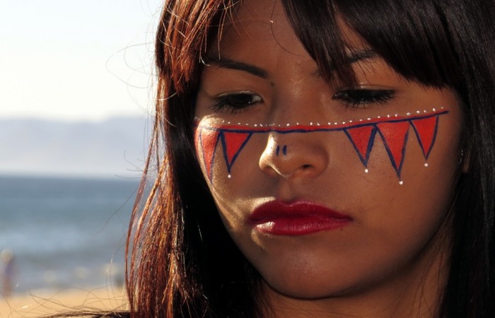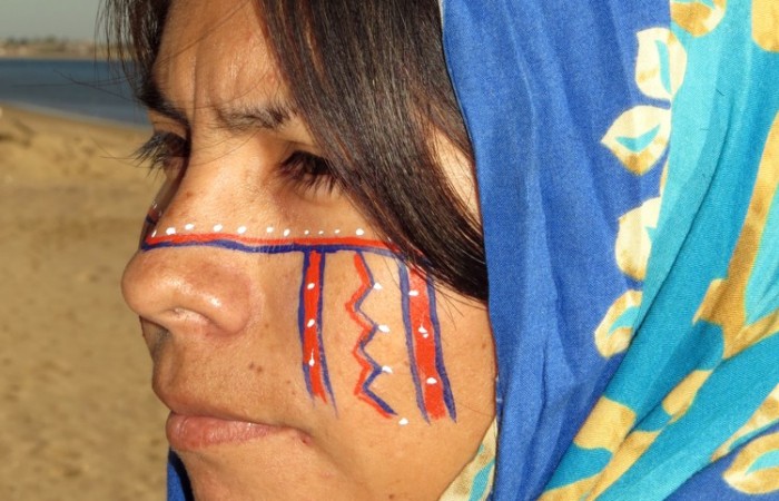 Las mujeres en fiestas y en algunos eventos, se maquillan con líneas y puntos de colores (rojo-muerte, blanco-suerte y azul-mar) con diferentes significados.